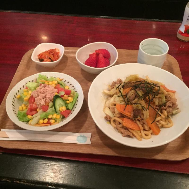 トクマスん家と同じ晩ご飯定食はリクエストした「焼きうどん」でした。ウマス!
