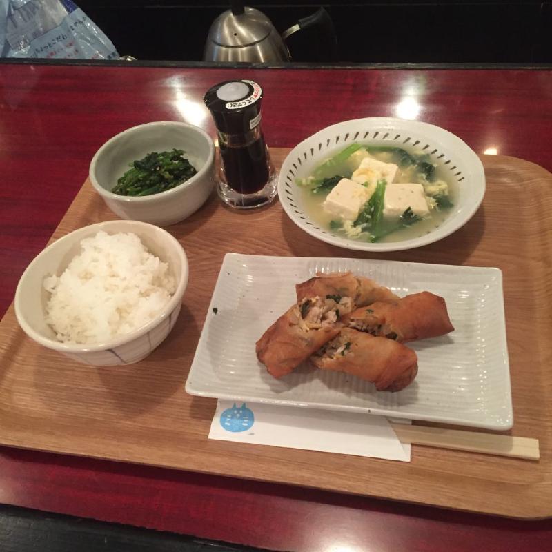 晩ご飯定食は春巻き、豆腐のかき玉子スープなどなど。