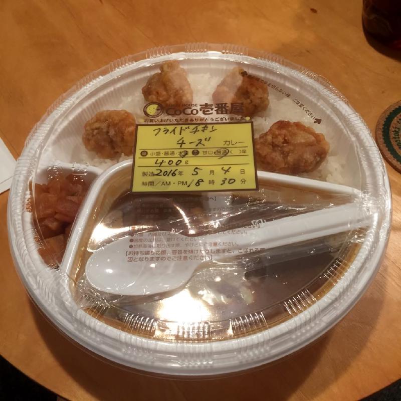 毎月4日はデストロイヤーズのKGの月命日なので、晩ご飯は強制的にココイチのカレーになります。 私はフライドチキンチーズカレーにしました。