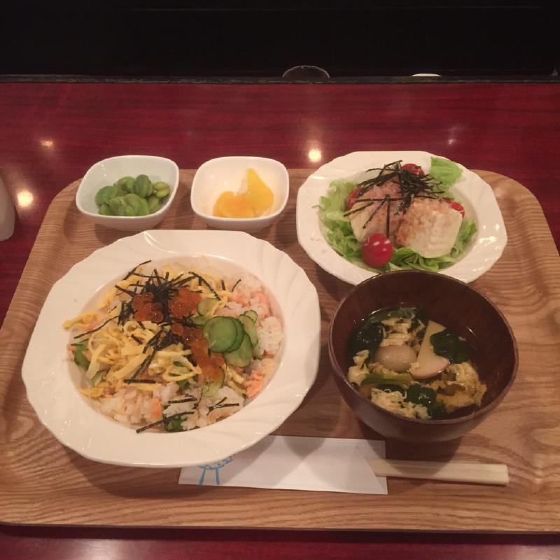 この日の晩ご飯はヘルシーな「鮭ちらし寿司」定食でございました。