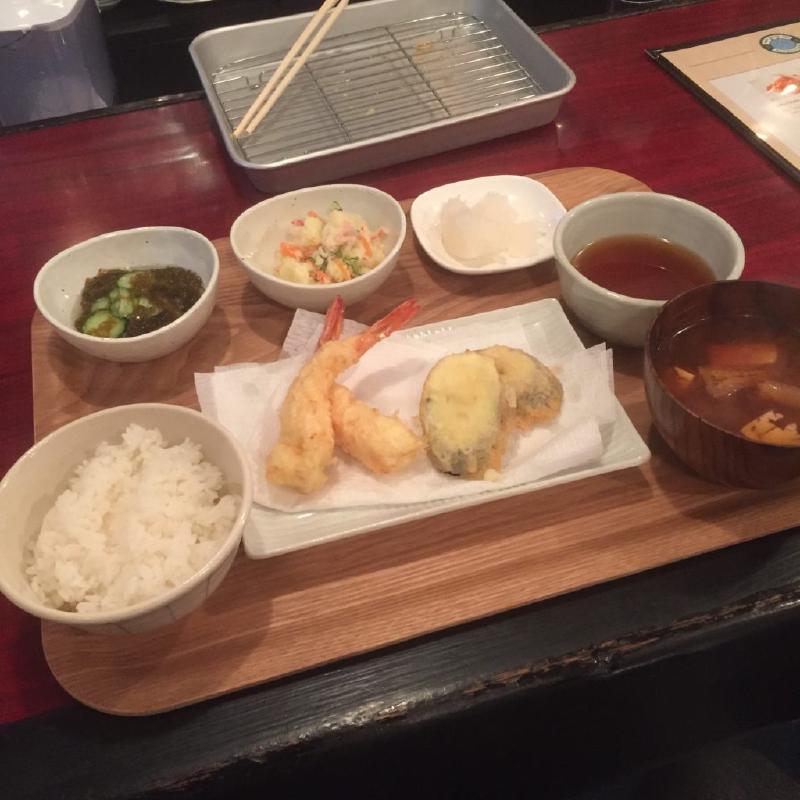天ぷら定食。揚げたての天ぷらが出てきてテンションが上がる!