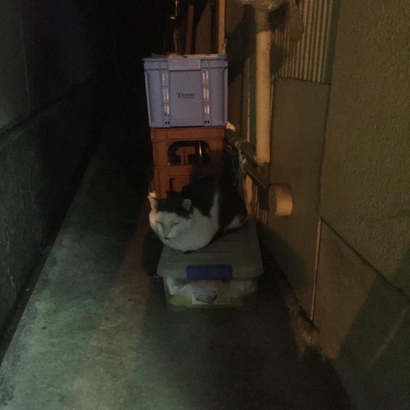 カフェには行きませんでした。関係無いけど、カフェの横の通路にいた猫洞通(ねこがほらどおり)在住のネコです。