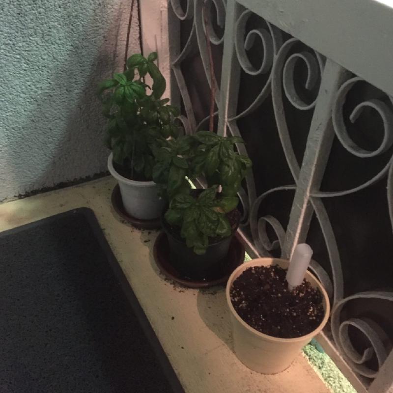 入り口の看板の裏側でバジルが育てられています。