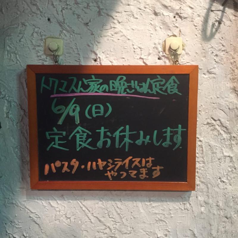 私の心の支え、トクマスん家の晩ごはん定食はお休みでした。6/9(日)になってるけど6/19(日)の誤りです。