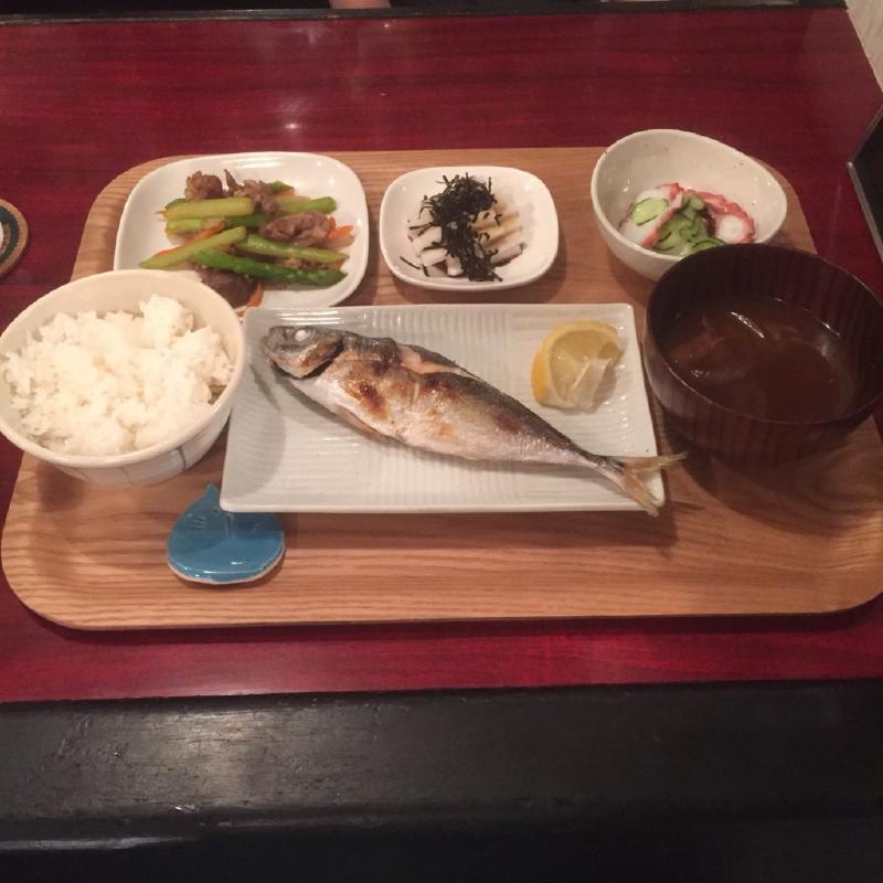 トクマスん家の晩ごはん定食は、アジの塩焼き。