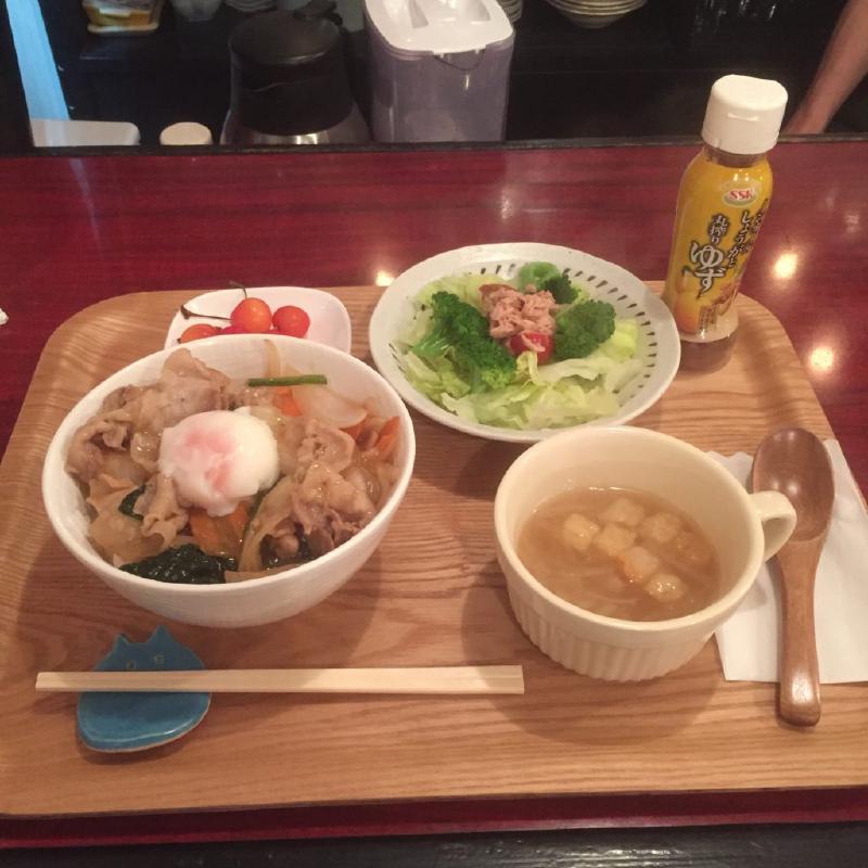スタミナポパイ丼とサラダとスープとサクランボ~♪