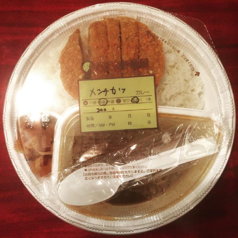 伝説のデストロイヤーズ・KGの月命日。なんであのときカフェではココイチのカレーを食べることになっています。メンチカツカレー、ご飯及び辛さ普通です。駅前のココイチで買って持ってきました。