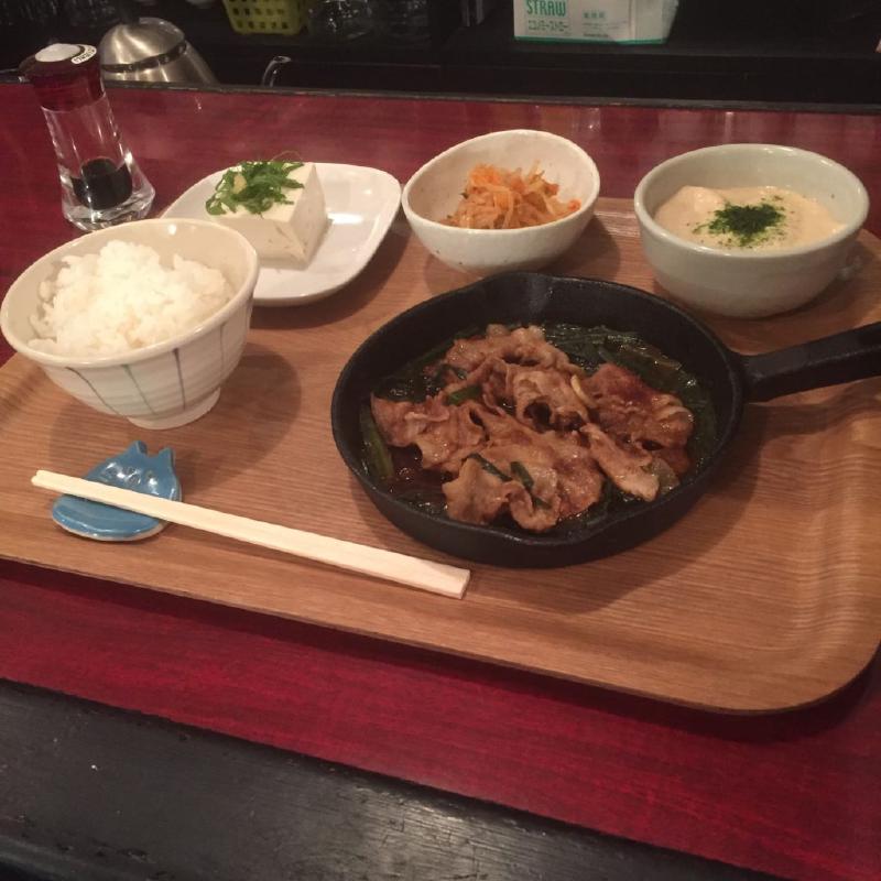 晩ご飯は、とろろ飯、豚バラとニラみそ煮でした。