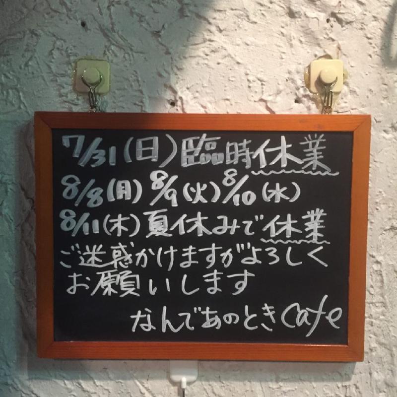 臨時休業及び夏休みのお知らせ。今月31日と8月8日~11日はカフェお休みですのでご注意ください。