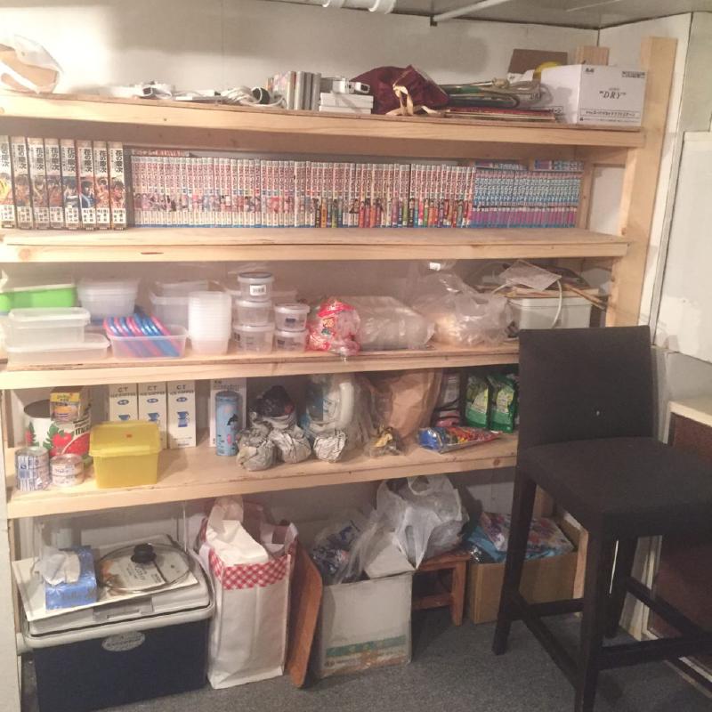 中二部屋に棚が出来ました。なんであのとき放送局のpanhead局長の号令の下、2日がかりで作製されたもの。ついでに漫画も増えた。