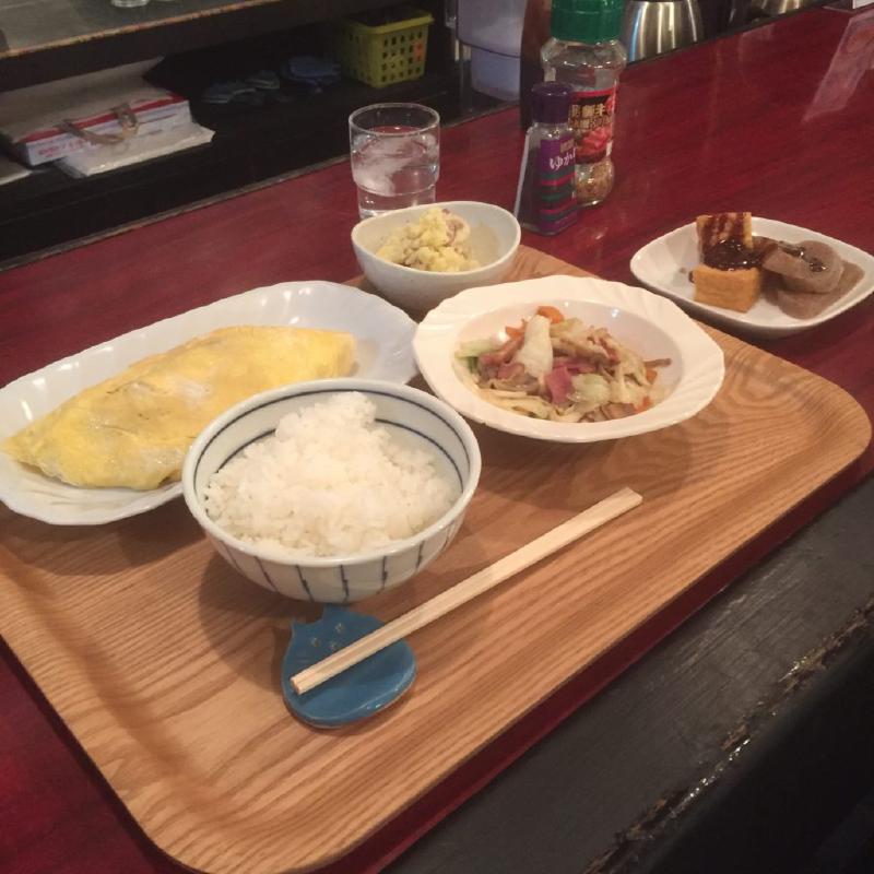 晩ご飯は、オムレツ、野菜炒め。トクマスん家ではオムレツにはウスターソースをかけて食べます。