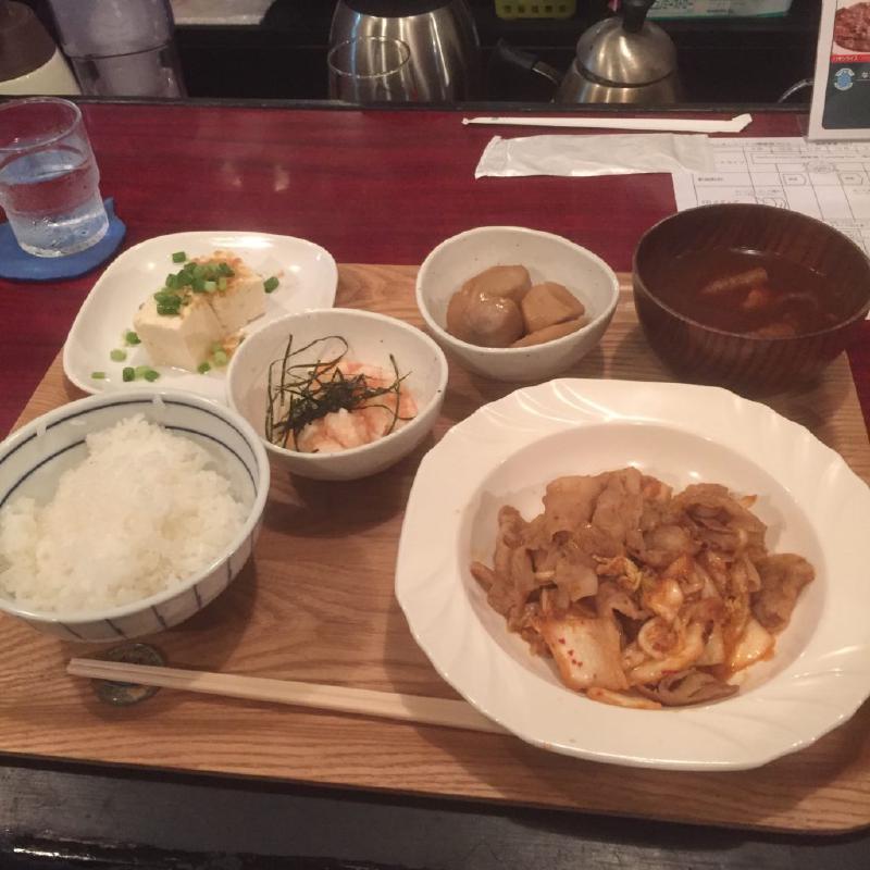 晩ご飯は、豚キムチ、長いも明太子和え。