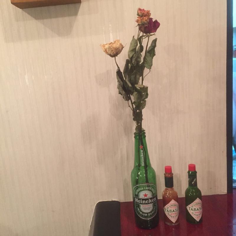 ドライフラワーがハイネケンの空き瓶に飾ってありました。