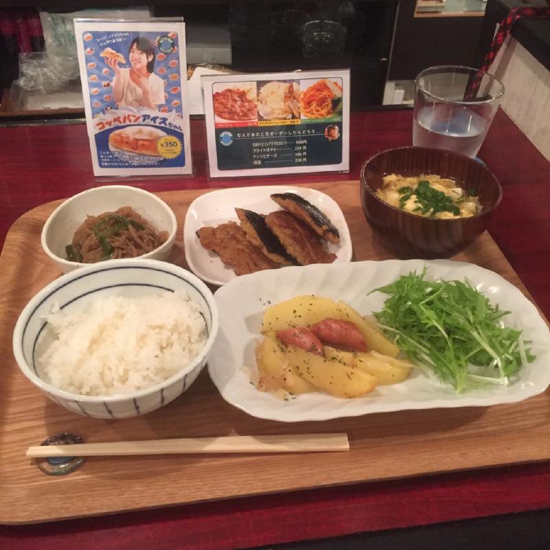 トクマスん家の晩ご飯定食は、れんこんかば焼き、ジャーマンポテトでした。
