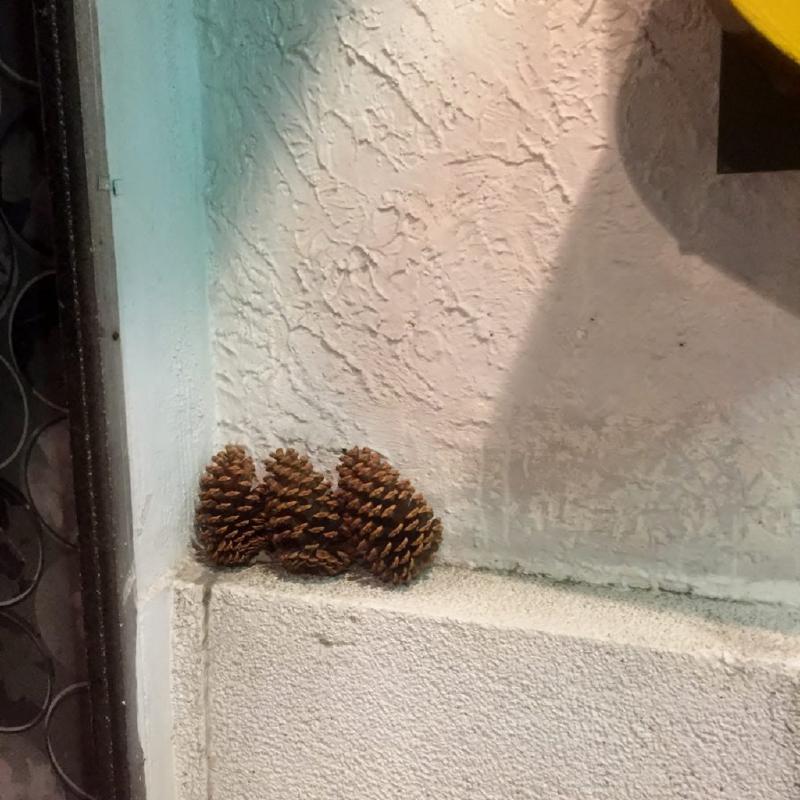 入り口で寄り添っていた松ぼっくり。