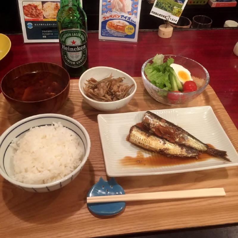 この日の晩ご飯定食は、イワシの生姜煮でした。ハイネケンは飲んでません。