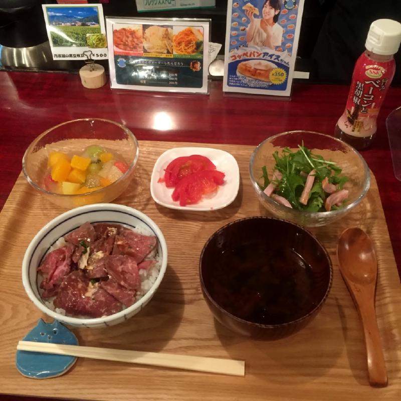 トクマスん家の晩ご飯定食は、肉団子の野菜あんかけ、ローストビーフ。