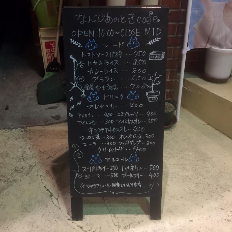 カフェの営業時間が変わりました。夕方の4時オープンになりました。この黒板の文字はトクマスターが書きました。