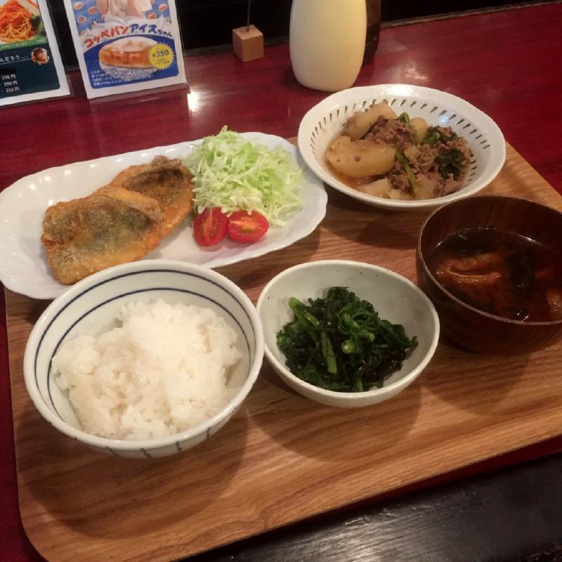 トクマスん家の晩ご飯定食は、アジの開きでした。