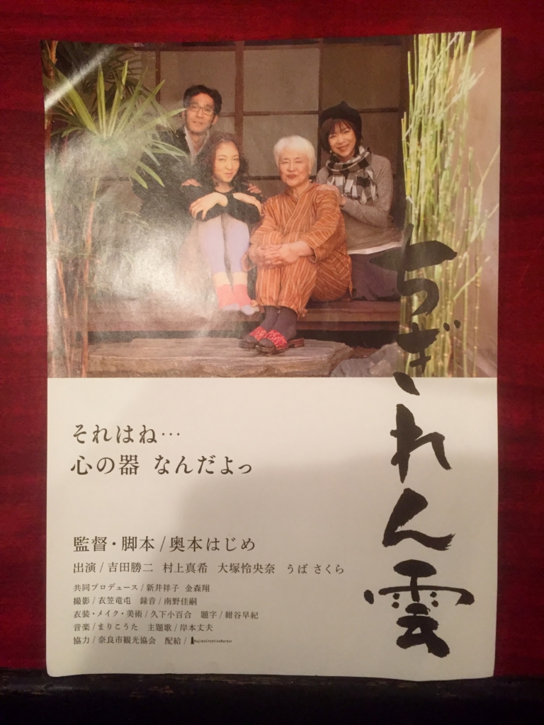 名古屋タツラウ会のメンバー、いさをっちさん、まりこうたさんが音楽で関わっている映画「ちぎれん雲」のフライヤーがありました。予告編のスタッフロールにお二人の名前が出たとき、とても嬉しかったです。