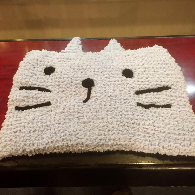クッションかブランケットか、ふわふわの猫のグッズがありました。