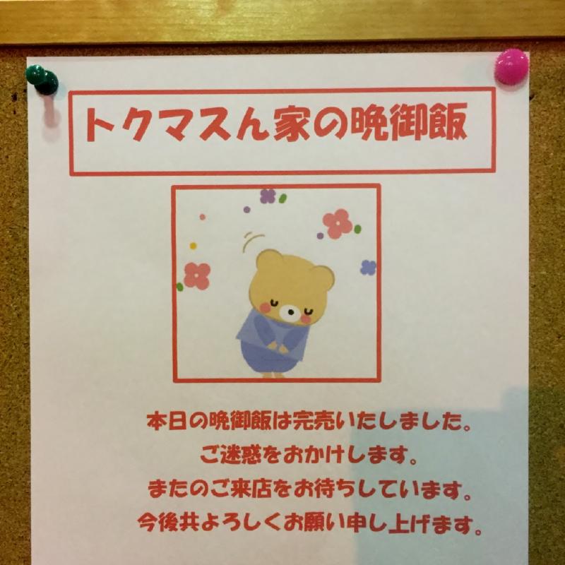 トクマスん家の晩御飯が売り切れると外のメッセージボードの表示は下のようになります。