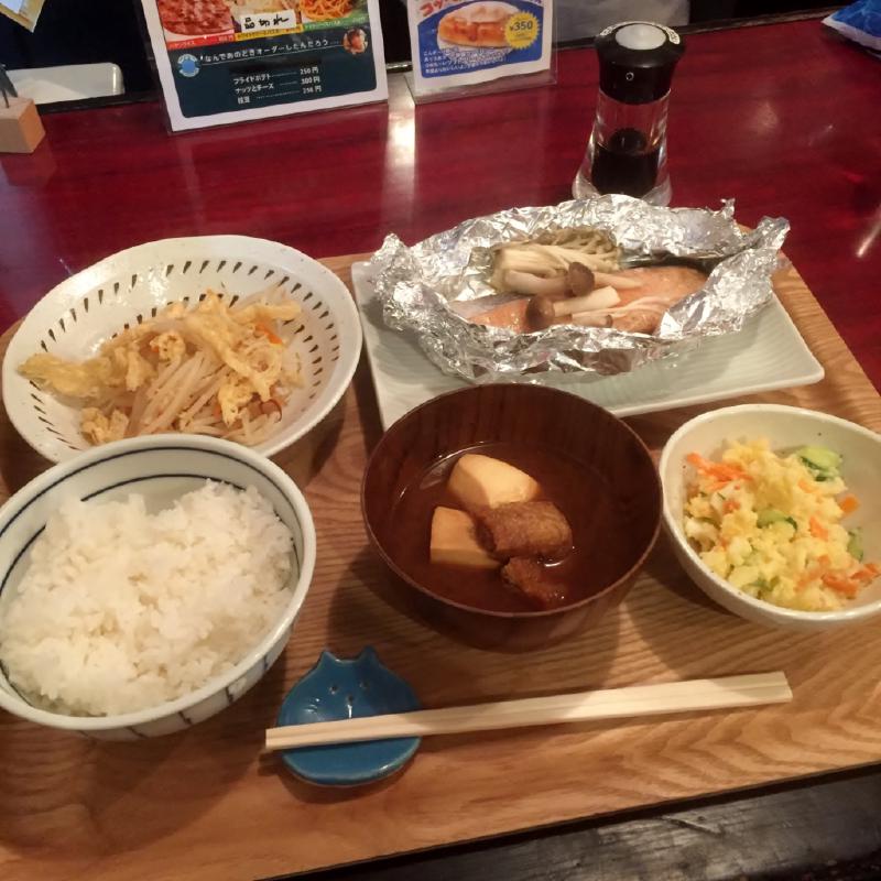 私の晩ご飯はまだありました。晩ご飯定食は、鮭のホイル焼きでした。