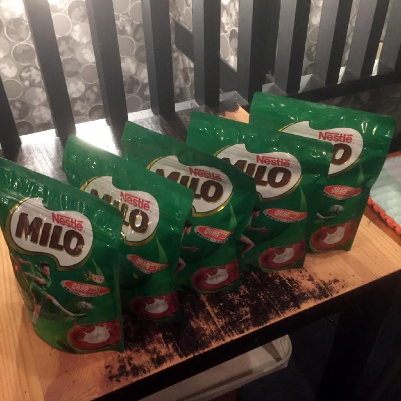 クリスマスイブ!というわけで、ミロをプレゼントしました。5袋でもミロ。