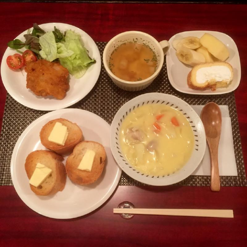 晩ご飯は、クリームシチュー。ちょっとクリスマスっぽい。