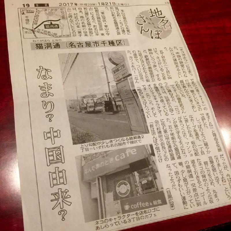 中日新聞の記事に、なんであのときカフェの事が掲載されました。1月21日(土)の朝刊です。