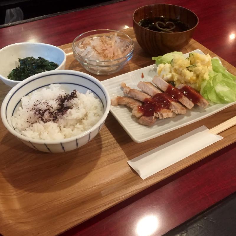 トクマスん家の晩ご飯定食は、ポークステーキでした。
