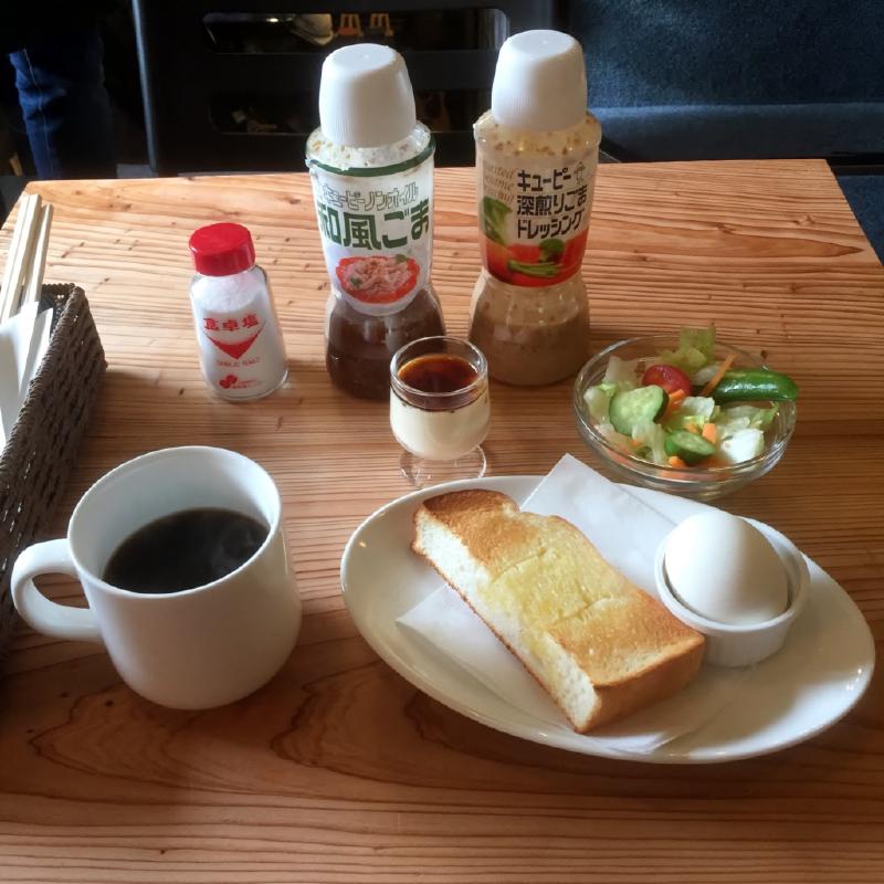 なんでモーニングに行きました。土日のみ、朝8時~11時でやってます。朝日のあたる席でいただきました。