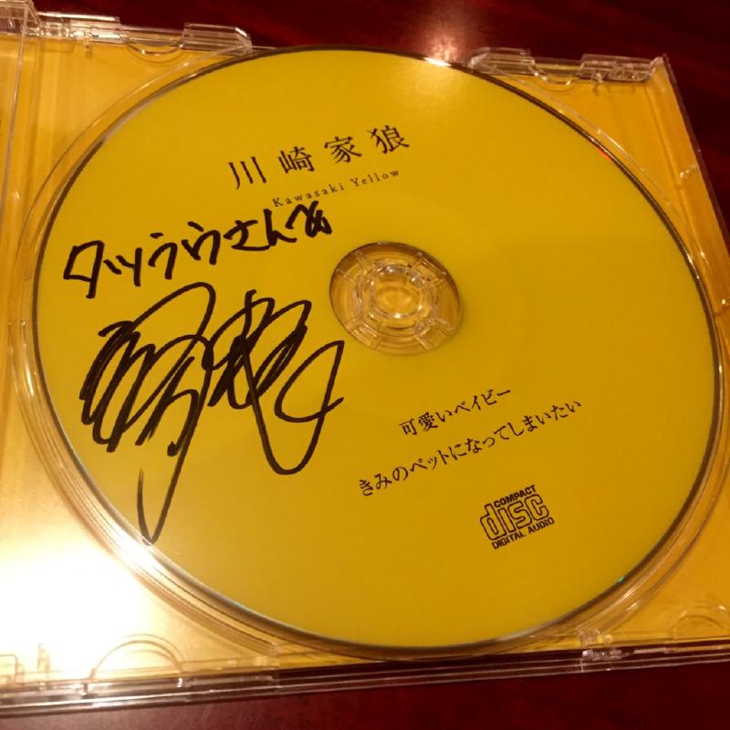 川崎家狼さんのCDについて、カフェに来られた方にはくださるとのことです!さらに家狼さんがいらっしゃる時にはサインしてくれますよ!「可愛いベイビー」と「きみのペットになってしまいたい」の2曲入り。