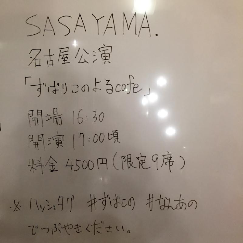 カフェは定休日ですが、本日はボーカリストSASAYAMA.さんの音楽ライブ「ずばりこのよるcafe」です。ボーカリストSASAYAMA.さんの情報は公式サイトがありますので、そちらを参照ください。