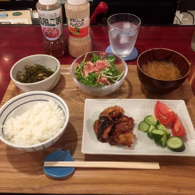 晩ご飯定食は、鶏肉の味噌焼きです。