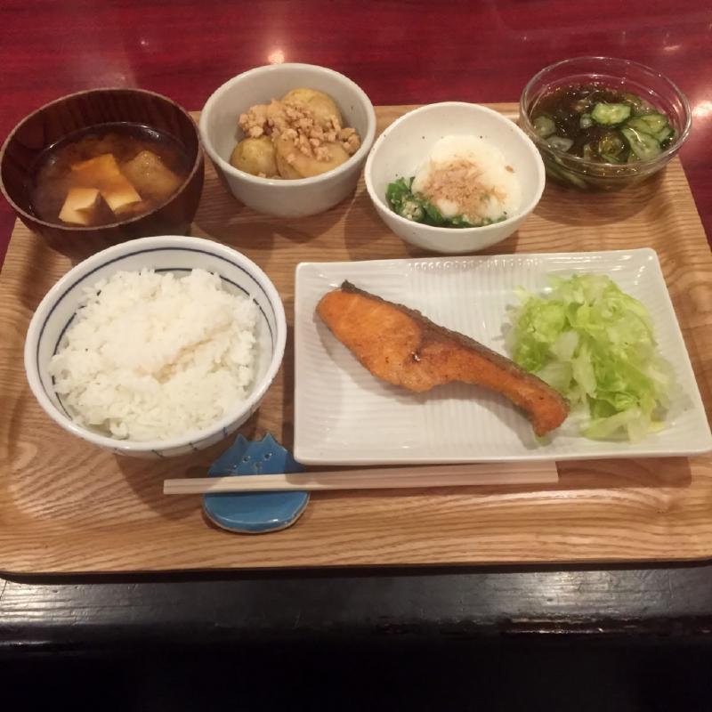 トクマスん家の晩ご飯定食は、鮭のムニエルです。