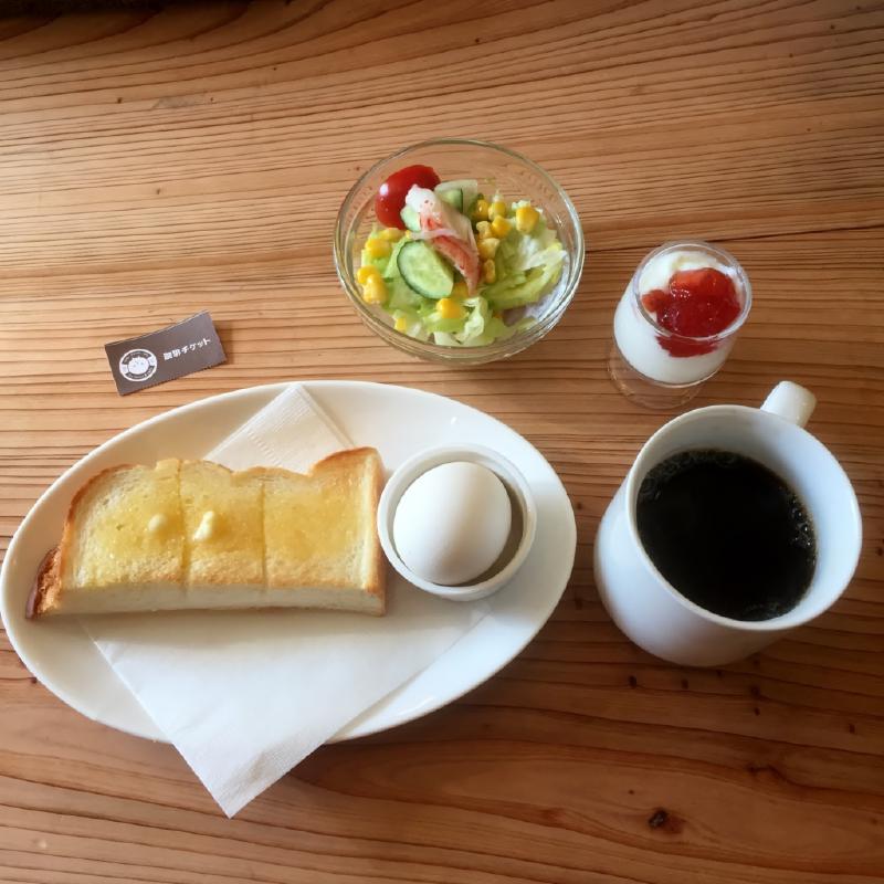 土曜は、なんでモーニングの日です。ドリンクにトースト、ゆでたまご、サラダ、デザートが付きます。このデザートはヨーグルトです。