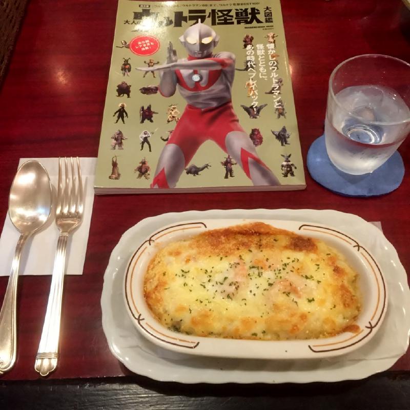 晩ご飯が売り切れでしたので、グラタンをいただきました。ウルトラ怪獣大図鑑は付きません。