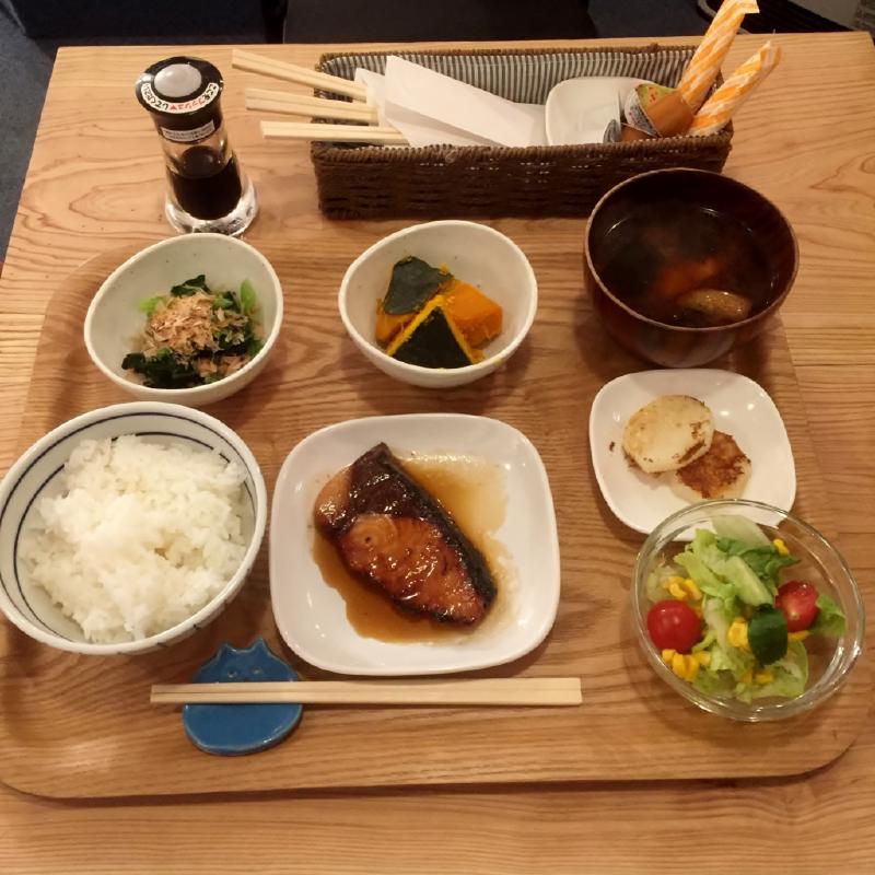 そして夜もカフェにいます。晩ご飯は、ぶりの照り焼きです。