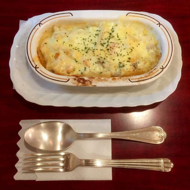 トクマスん家の晩ご飯定食はお休みでしたので、グラタンをいただきました。