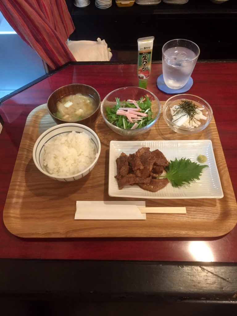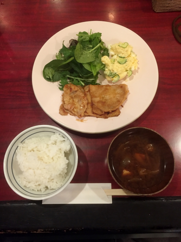晩ご飯定食は、豚しょうが焼きです。