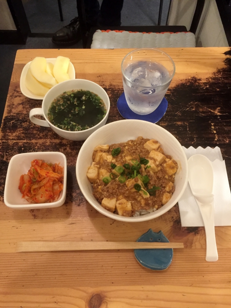 晩ご飯定食は、麻婆豆腐丼です。