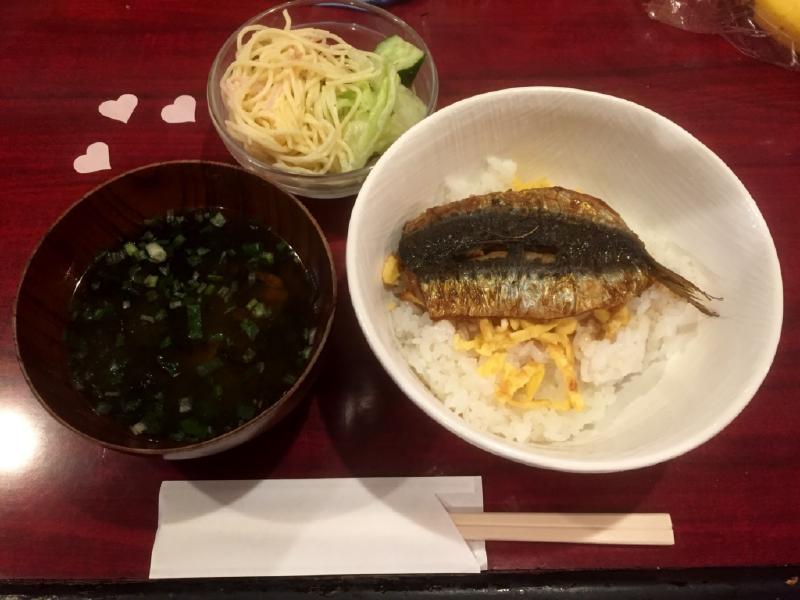 晩ご飯は蒲焼丼。(本当はもっとおかずがあったらしいですが、売り切れのためどんぶりとみそ汁と朝のモーニングセットの残りのサラダです。)