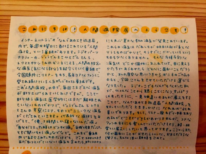 カフェ連休でネタがないので「人間病院個展」チラシを貼っておきます。現物はカフェにありますのでぜひ手にとってみてください。