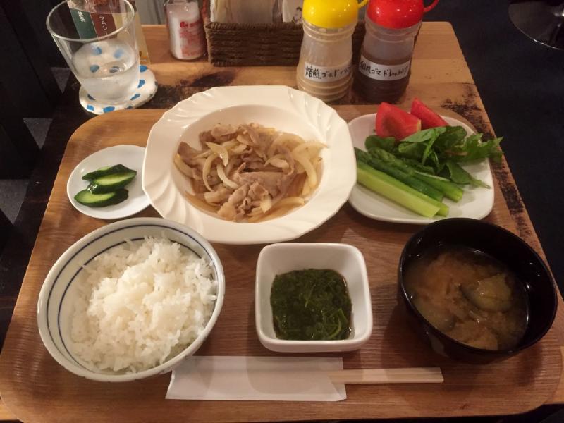 晩ご飯定食は、豚肉と玉ねぎのさっぱり煮です。