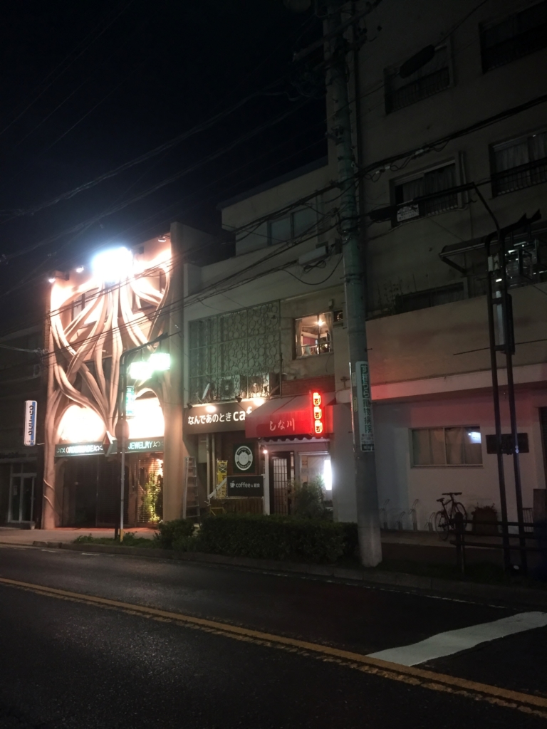 なんであのときカフェを外から見たところです。ケイウノさんと、しな川さんの間が、なんであのときカフェです。