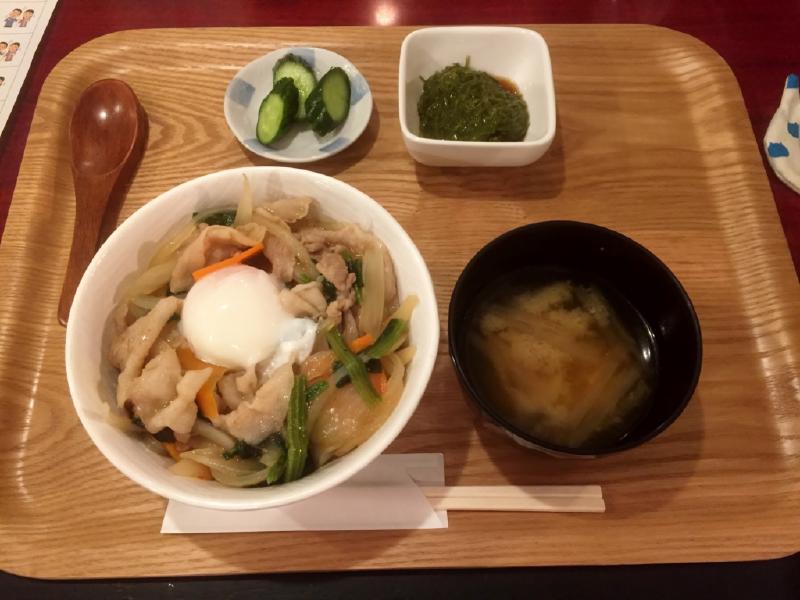 晩ご飯定食は、豚肉スタミナ丼です。アヤコーホーさんが困ったときのスタミナ丼って言ってました、手抜きメニューらしい。でも美味しいです。