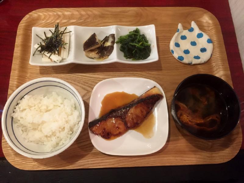トクマスん家の晩ご飯定食は、ブリの照り焼きです。