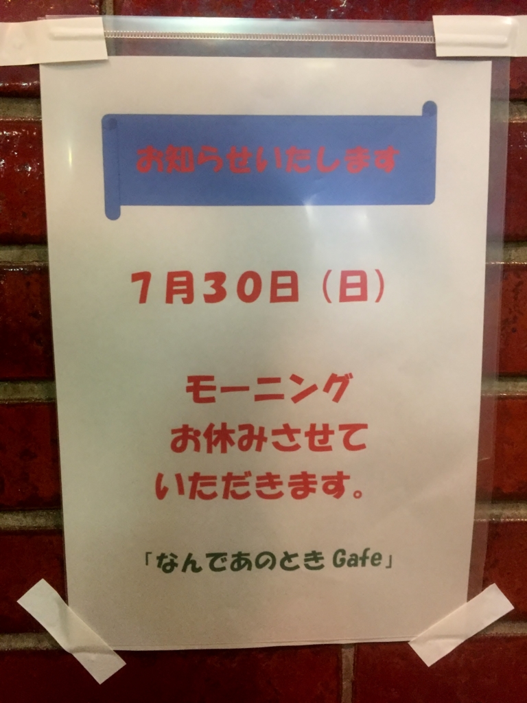 7月30日(日)のモーニングはアヤコーホーがいないのでお休みらしいです。
