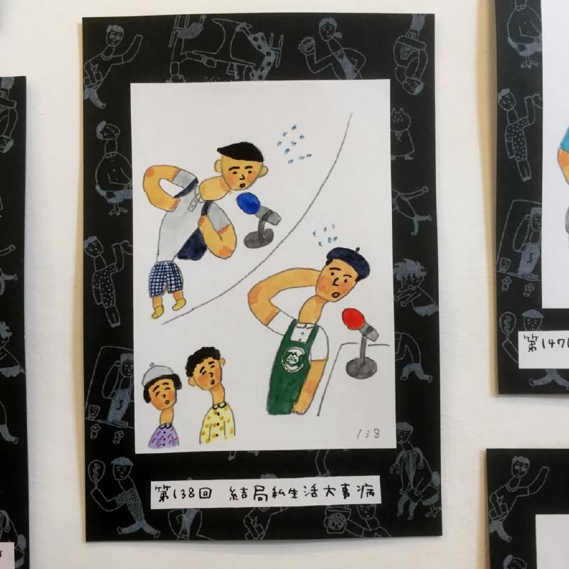 カフェ内で開催中の人間病院展にて、ひらめぐ商店さんに似顔絵を描いてもらいました。人生初の似顔絵です。そして格闘技病です。